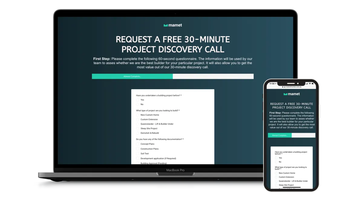 We do all the "selling" on your behalf well before your prospects every reach out to talk to you. Therefore, the type of lead you will receive is a pre-qualified, scheduled call in your personal calendar - ready and keen to discuss how can you help them build their dream home.